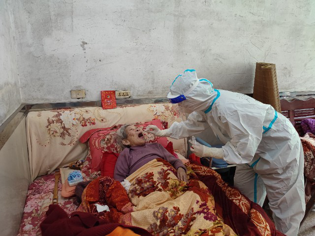 “辛苦你們了,這么辛苦為我們上門做核酸檢測,感謝,感謝!”不少老人和家屬看見醫護人員上門采集,十分感動,紛紛致謝。