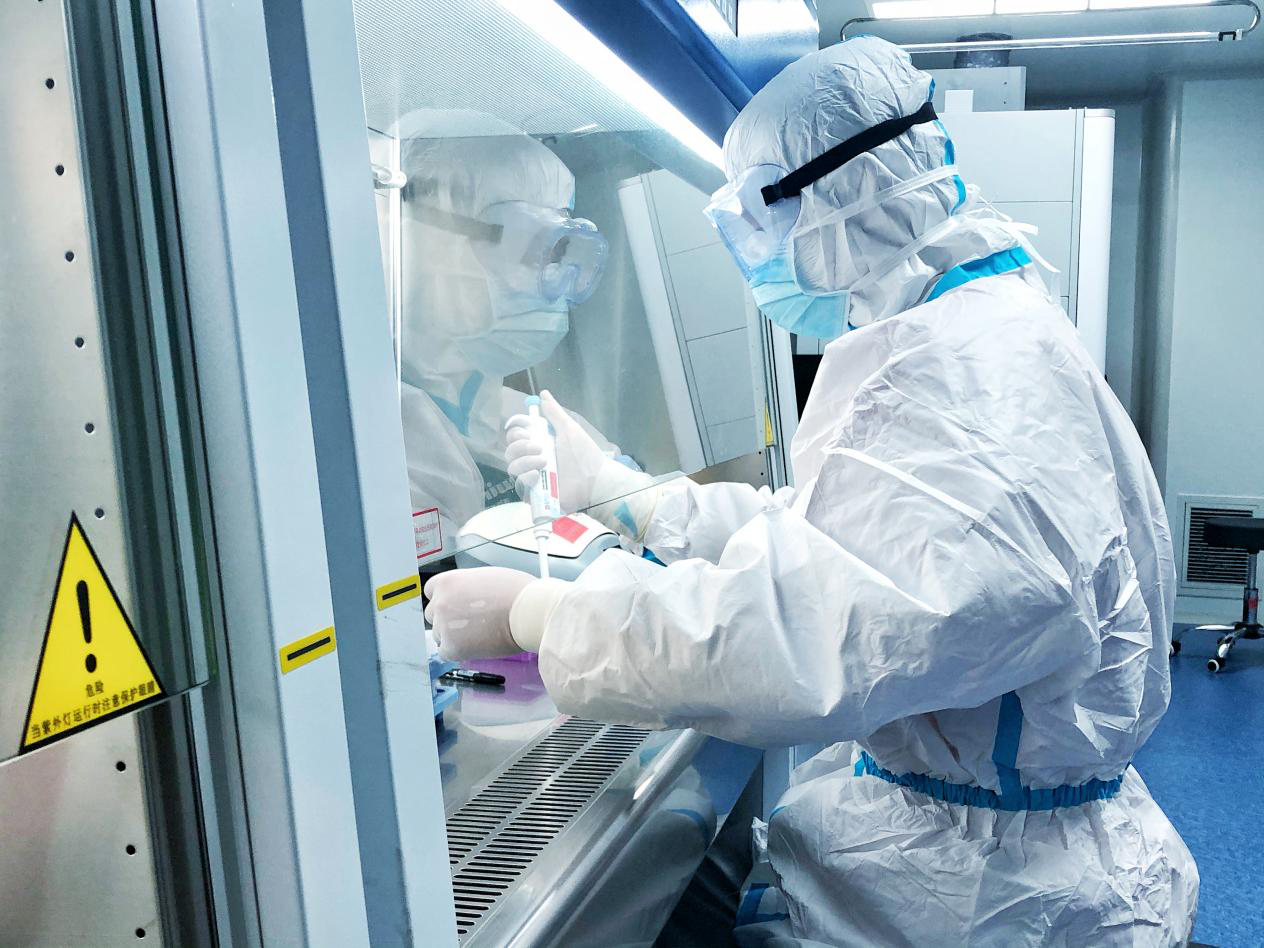 實驗室內機器始終保持24小時連軸轉的狀態,醫務人員嚴格按步驟晝夜不停檢測樣本,有人連續工作近10個小時后直接癱坐在椅子上。趙楓總是打趣地說:“月亮還沒上班我們進實驗室,太陽上班我們出實驗室”。