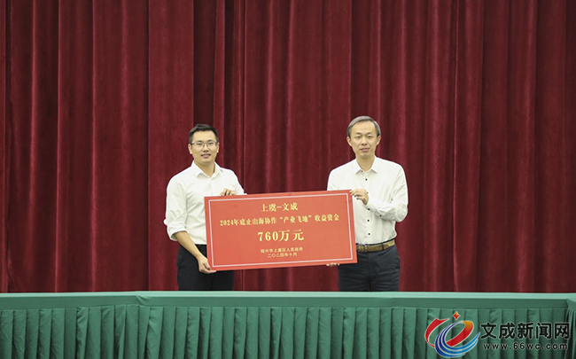 會上,雙方共同簽訂《上虞-文成2024年度山海協作工程框架協議》,舉行上虞-文成山海協作“產業飛地”收益資金兌付儀式。