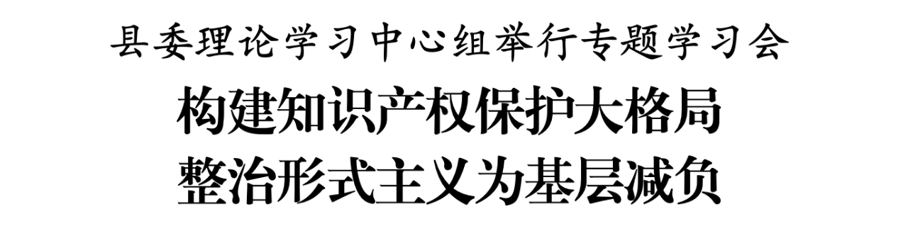 會(huì)上,相關(guān)縣領(lǐng)導(dǎo)圍繞習(xí)近平總書記關(guān)于加強(qiáng)知識(shí)產(chǎn)權(quán)保護(hù)的系列重要論述和《整治形式主義為基層減負(fù)若干規(guī)定》作交流發(fā)言。
