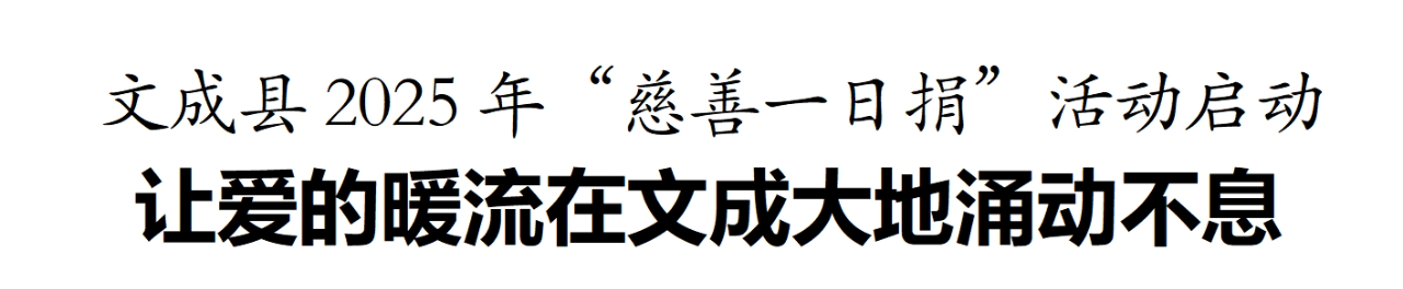 今年我縣“慈善一日捐”活動以“崇德向善·依法興善”為主題,引導全縣廣大干部職工和各界愛心人士以實際行動弘揚傳統美德、詮釋使命擔當,崇慈向善、扶弱助困,持續做強“善行文成”慈善品牌,助力“強城行動”,縮小“三大差距”。