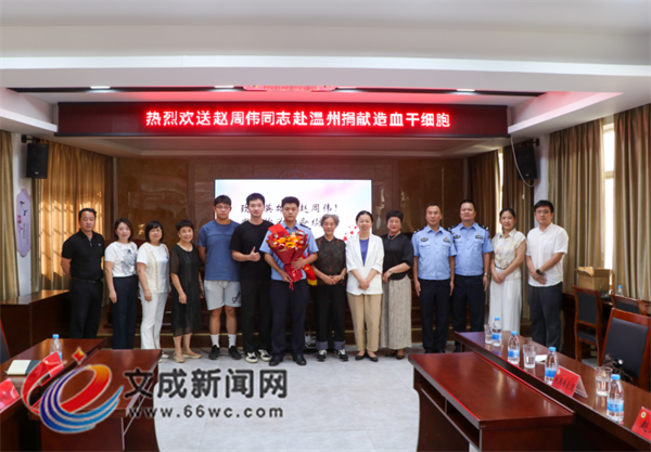 文成新聞網訊( 記者 徐露露 季向賢)近日,我縣為赴溫州捐獻造血干細胞的趙周偉同志舉行歡送會。副縣長、縣紅十字會會長吳可塑參加儀式并講話。