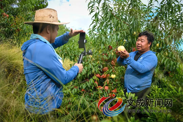 線上直播間熱度不減,線下桃園里同樣忙碌。果農劉化迪穿梭在桃林間,熟練地采摘、分揀成熟果實,為線上訂單備貨。他笑著說,今年最大的驚喜就是多了“直播幫手”,不僅讓秋白桃銷量比往年翻了番,還省了不少線下跑銷路的功夫,省心又增收。
