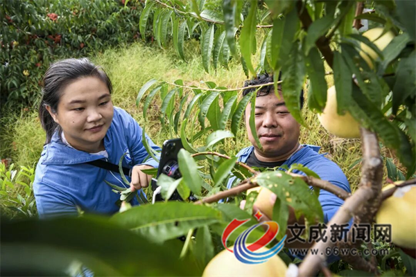文成新聞網訊(記者 夏林艷 魏為強 朱偉)眼下正是秋白桃成熟采收的旺季,南田鎮武陽村的桃園里,滿枝白里透粉的秋白桃壓彎枝頭,迎來一年中最忙碌的豐收時刻。本期的“五山聯動·與山共興”系列報道,就讓我們走進這片桃園,看看這顆顆脆甜的秋白桃如何通過直播鏡頭打破銷路壁壘、走向全國,成為帶動果農增收的“甜蜜致富果”,奏響鄉村共富新樂章。