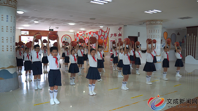 捐贈儀式結束后,還開展了“球類使用互動”環節。由學生組成的表演方陣,身著統一校服,手持嶄新的籃球。伴隨著清脆的歡快的節拍,孩子們動作流暢、步伐有力,將運球、傳球、轉身等動作巧妙融入舞蹈編排之中。