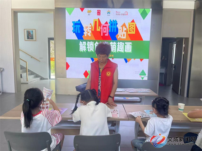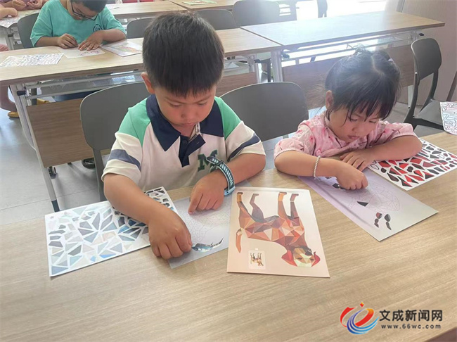 在聯豐村,“玩轉幾何拼貼圖”活動帶領孩子們開啟了一場創意之旅。活動現場,色彩斑斕的三角形、梯形、菱形等幾何貼片成為孩子們手中的創作素材。他們仔細對照數字標識,耐心粘貼,零散的圖形逐漸組合成公雞、金魚、蝴蝶等生動圖案。活動巧妙融合數學邏輯與藝術創造,不僅鍛煉了孩子們的動手能力,也讓創意與探索成為童年中的美好記憶。
