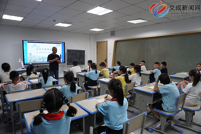 當晚同時開課的還有少兒硬筆書法,老師在前面細心地講解,教孩子們如何正確握筆、如何正確發力,手把手教學。當期授課老師鄭開齊從事小學生書法教育已有十余年,曾多次指導學生在藝術節硬筆書法中獲獎,他說:“這個公益課我堅持了好多年,往期很多學生反饋都說挺好。”