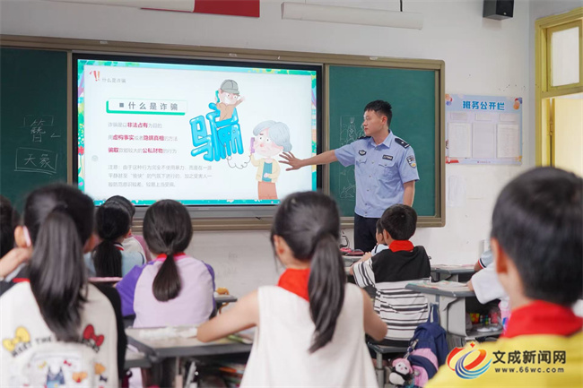 活動伊始,民警周警官沒有照搬生硬的法律條文,而是從孩子們熟悉的童話形象切入,瞬間拉近了與學生的距離。針對小學生認知特點,民警精心準備了圖文并茂的PPT和動畫短片,用“小朋友收到陌生鏈接要不要點”“有人冒充老師收‘資料費’該怎么辦”等貼近校園生活的場景提問,引導孩子們主動思考。