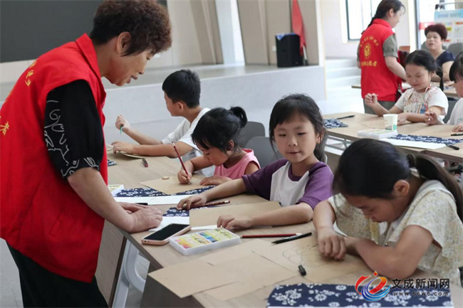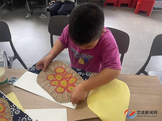 在聯豐村,一場以“霜降童手繪柿 定格節氣美韻”為主題的活動充滿了藝術氣息與融融暖意;顒右潦,志愿者向孩子們介紹了霜降節氣的物候特點、民間習俗以及柿子所象征的“事事如意”的美好寓意,將文化知識的傳播融入輕松愉快的氛圍中。隨后,孩子們在指導下投入創作:他們專注地用黑色勾線筆在牛皮卡紙上勾勒出柿子圓潤飽滿的輪廓,再用鮮艷的蠟筆細心暈染,筆下很快堆疊出滿筐“豐收”的盛景。勾勒、裁剪、拼貼……孩子們將畫好的柿子與籃筐細心剪下,精心粘貼在鋪就的藍色碎花布底板上,并配以吉祥文字。一幅幅充滿童真又飽含深秋詩意的“柿柿如意”圖躍然眼前,不僅定格了節氣的獨特美韻,更將傳統文化的種子播撒進孩子們的心田。