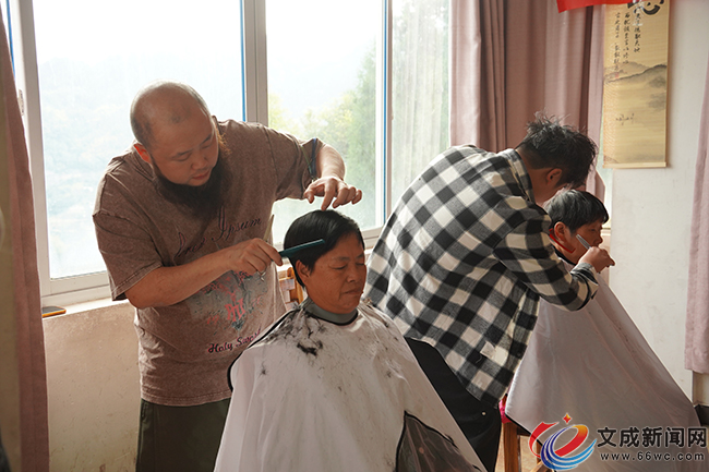 活動現場,長興村老年食堂熱鬧非凡。志愿者們一早便布置好場地,各項貼心服務有序展開。在健康義診區,志愿者們耐心細致地為每一位前來參加活動的老人測量血壓、檢測血糖,并認真做好記錄。他們一邊測量,一邊輕聲詢問老人們的日常身體狀況,針對數值異常的情況給予相關建議。在義剪區,理發志愿者們手法嫻熟,為老人們理出清爽利落的新發型。在中醫針灸區,具備相應資質的志愿者為有需要的老人進行了簡單的針灸調理,以緩解她們肩頸酸痛等不適。除此之外,反詐宣傳區也是人氣十足,志愿者們用通俗易懂的語言向老人普及詐騙手段和防范技巧,以此來提高老人的反詐意識。