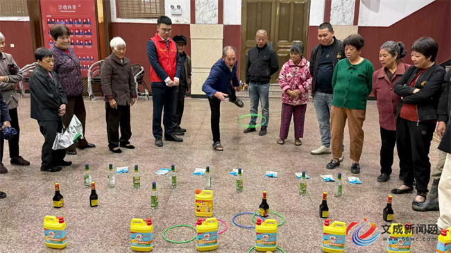 在鳳垟社區文化禮堂,趣味互動環節點燃現場氛圍。黨員志愿者們提前布置好套圈游戲場地,準備了各種生活用品,老人們有序排隊、瞄準投擲,成功套中獎品時的歡呼聲此起彼伏,現場充滿歡聲笑語,既豐富了老人的精神文化生活,也讓大家感受到節日的熱鬧氛圍。