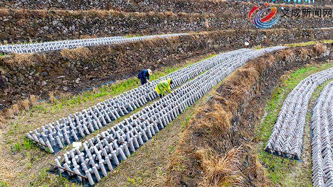 走進銅鈴山鎮石門村的銅鈴山石門稻蝦魚耳輪作基地,農戶們分工協作,有的為菌棒精準打孔,有的快速分揀搬運,有的按序在田間擺放。不一會兒,一排排菌棒便交錯“立”在田間,展現著新一季的豐收希望。據悉,本次將集中種下木耳菌棒共20萬棒。