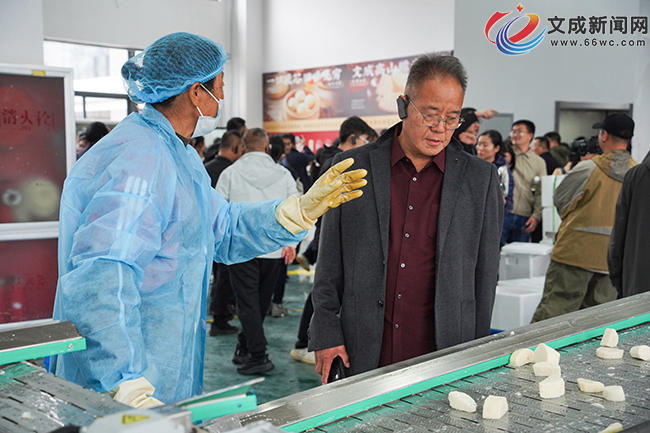 上午9時,與會人員首站抵達黃垟村糯米山藥種植基地,實地觀摩標準化種植模式,詳細了解土壤管理、種苗培育等環節。隨后前往博海食品有限公司,參觀糯米山藥精深加工生產線與冷鏈倉儲系統,近距離感受從原料到成品的全鏈條轉化過程,與會人員邊走邊看,不時駐足詢問加工工藝與市場銷路,對文成延伸山藥產業鏈、提升產品附加值的做法頻頻稱贊。