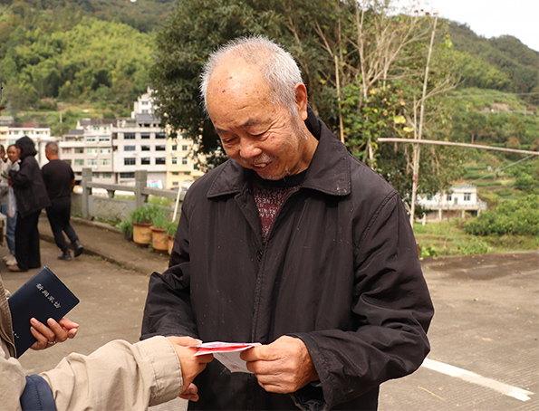 文成新聞網訊(記者 張嘉麗 攝影 潘聰聰 ) 10月31日,“孝行200”欄目到雙桂鄉桂西村開展愛心活動,看望慰問了徐奕坤、徐世成、葉秀英、徐奕眉4位老人,并為每位老人送去愛心款200元錢。