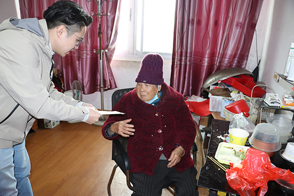 上午11點55分,記者在百丈漈鎮篁莊村慰問了周成花老人。